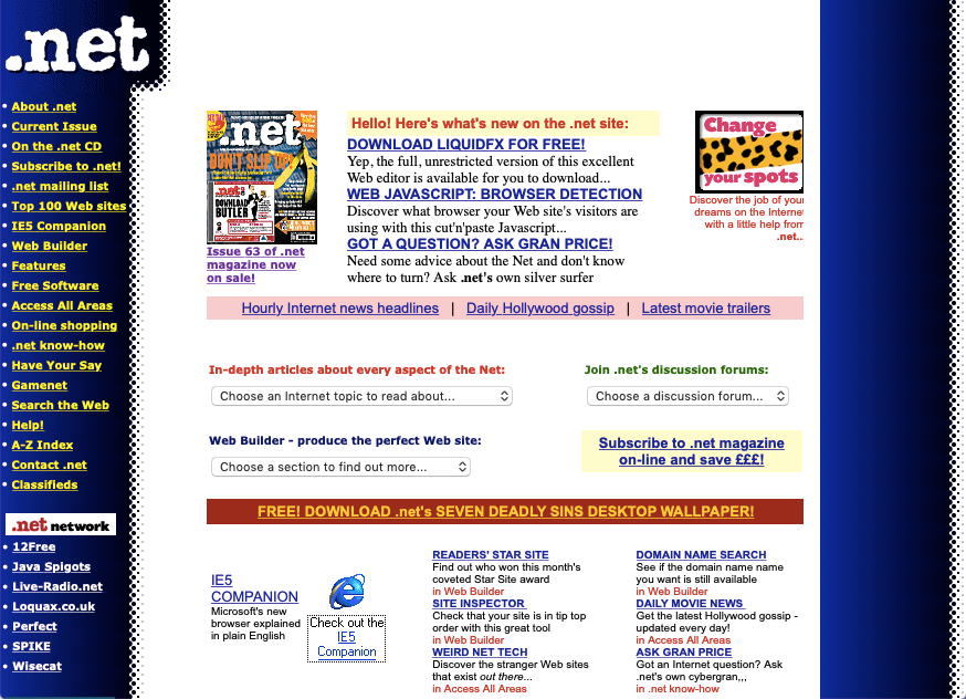The .net forums were a magical community of likeminded geeks, mostly in their teens, who just loved the Internet. These days, nobody “loves the Internet” as we did then. Today that would be like having “electricity” as a hobby. Yet back from around 1999 to 2001, the .net forums were where I spent a considerable amount of time socialising (though at the age of 15, my parents didn’t think of it as being very social). I remember posting a message to the Futurenet NNTP server through Outlook Express and within minutes getting a reply. It was like Reddit, but far more humane, and because there were only about 20 or so regulars, it felt like a real community. I remember the Microsoft .NET announcement - how could Microsoft steal the name of our beloved magazine? Waiting for the world to end as Nostradamus predicted in 1999, checking that the internet still worked on January 1st 2000, and posting a link to my latest Geocities creation to the reader’s site newsgroup - eagerly awaiting feedback from fellow readers - all on the .net forums. The community faltered slightly when Future Publishing closed down the NNTP servers and moved the forums to web-based software. Thankfully many of forum regulars found a new home on IRC in #netmag on the Blitzed network. There I would spend whole weekends chatting to my friends on IRC, in-between TFC sessions. It wasn’t long after that we built a site called “DFNET - The .net reader’s site network” which further reinforced the sense of community between readers.