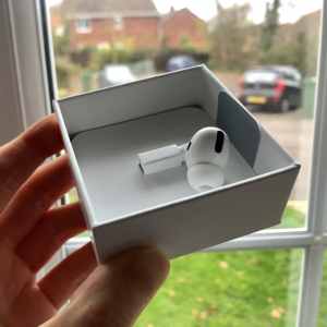 Kudos to Apple for getting a replacement AirPod Pro out to me within three days of me reporting the fault. Without any notice, a single AirPod arrived at my door in this cute little box. My AirPods Pro had developed the known fault where one of them (in my case the left one) starts to make a rattling/cracking sound with movement. You can hear it when walking fast, and it’s downright horrible when running. I’d also noticed the noice cancellation becoming less efficient, though it was very subtle, I recall having to have the sound much louder in order to hear over traffic.