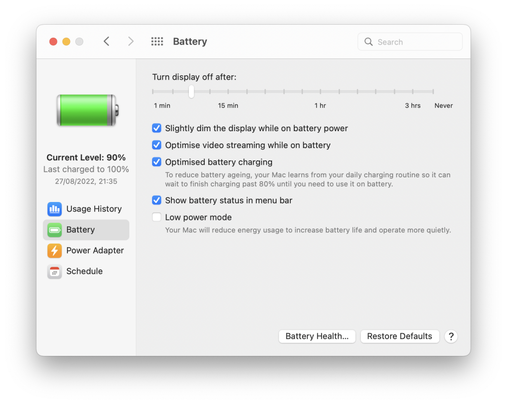 Energy Saver on a Portable (if anyone knows how to configure UTM to make Mac OS X 10.0 think it’s running on a laptop, let me know and I’ll add a comparison for that too)